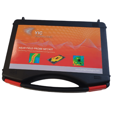 Designed by Y.I.C. Technologies, the NFP Kit is designed for measuring near-field emissions for EMC/EMI troubleshooting and pre-compliance testing. Interference radiated from traces or components of electronic PCBs, assemblies, cables, enclosures, or products can also be located. The probe output is proportional to the magnetic field (H) strength present at the probe location.