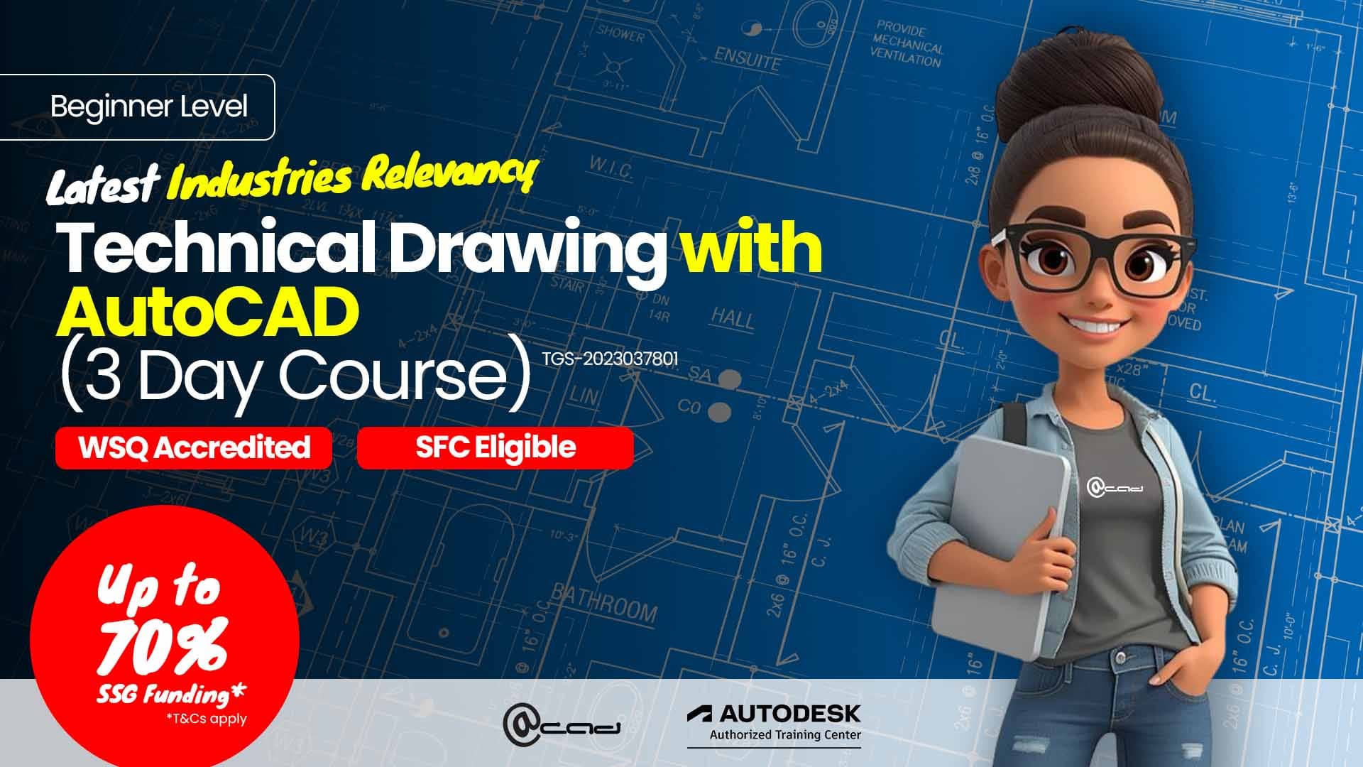 Technical Drawing with AutoCAD is a SkillsFuture Singapore (SSG) accredited program.